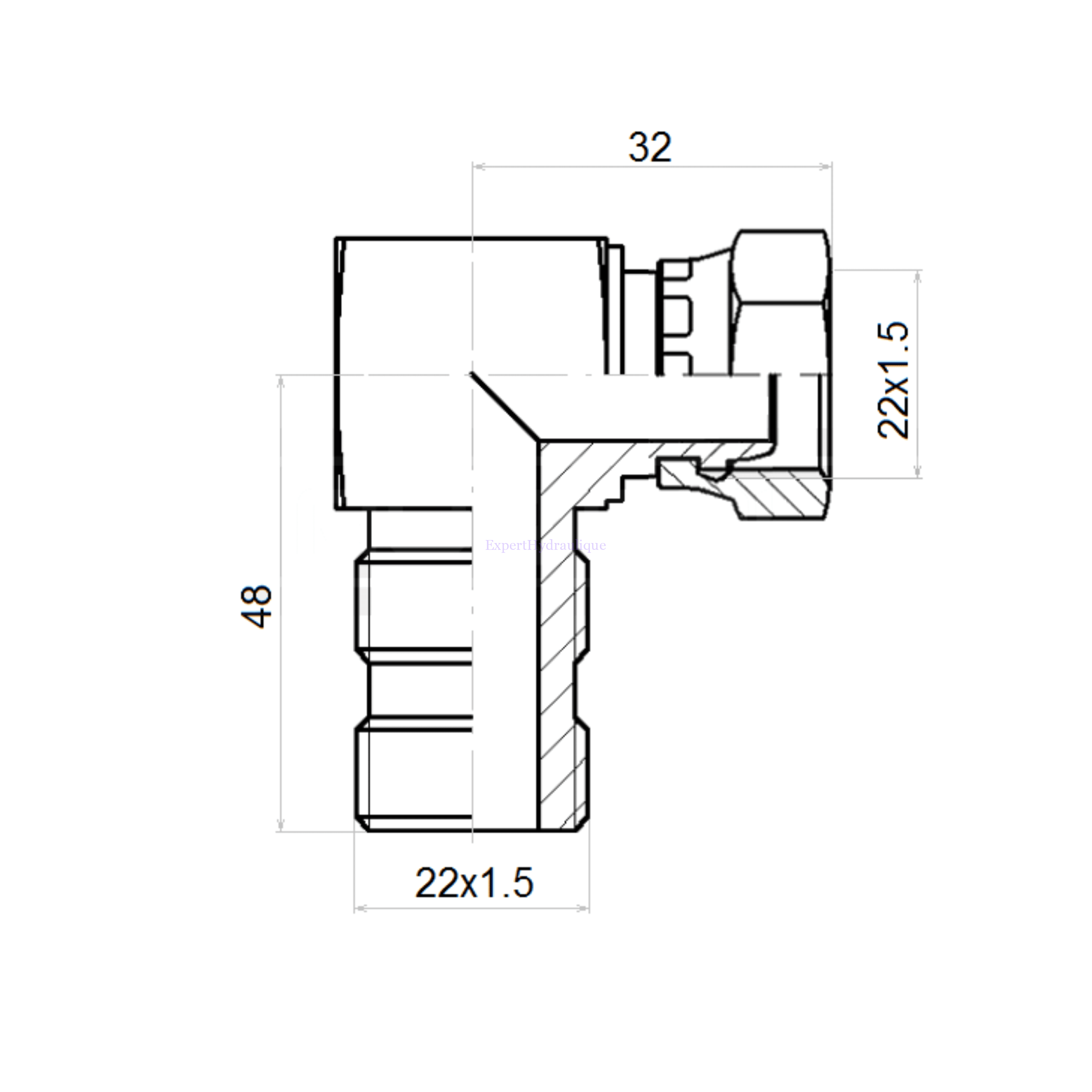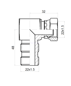 Caractéristiques d’un coude compact mâle M22x150 – femelle 15L (M22x150) :